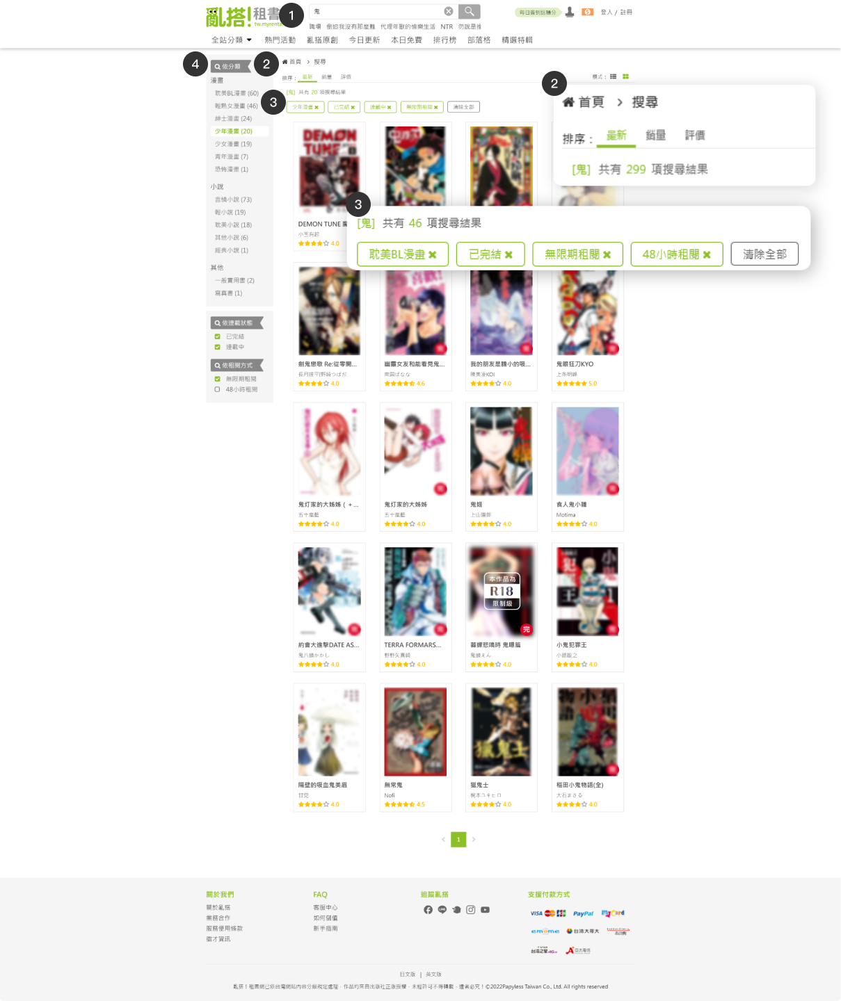 在重新設計搜尋框之前,我們計劃先改版搜尋結果頁面。我們移除了原有的側邊欄,並新增進階篩選功能,使用戶在搜尋上更加便利有效率。