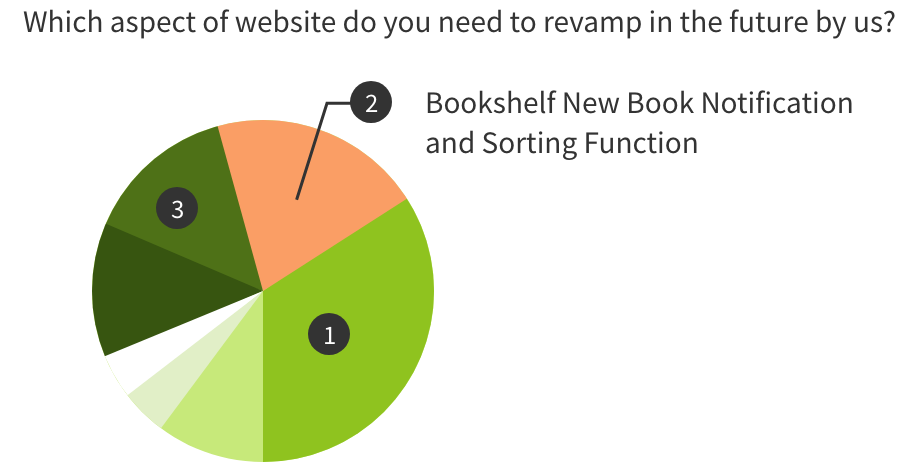 調查用戶未來期望針對官網哪項功能改版,從資料顯示「書櫃」功能為用戶第二期望改版之項。