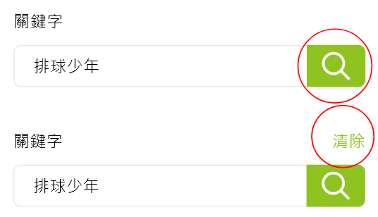 用戶於 Header 點擊搜尋 icon 後,滿版顯示搜尋內容,並移除了舊版類別項目的顯示。常用關鍵字現在顯示在搜尋列下方,同時也會顯示最近的搜尋紀錄,並新增了「清除」圖示按鈕,增加可讀性與易用性並補足系統狀態可視性。