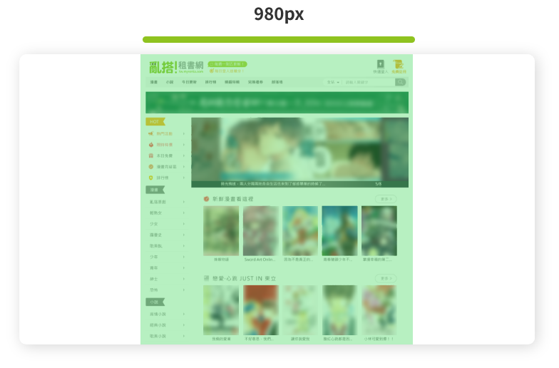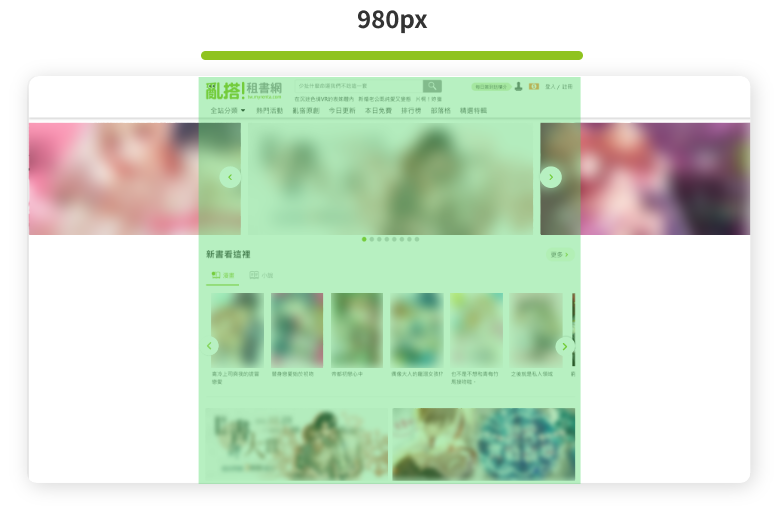 由於改版為漸進式進行,網頁最大寬度仍維持 980px 以及網站的 Breakpoint,考量到首頁頁面特殊性,頁面部分元件滿版顯示。
